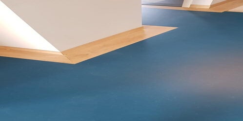 The use of sustainable materials was a key focus in this design. The floor was made of marmoleum combined with oak edge wood, providing both a warm aesthetic and long-lasting durability and ease of use.